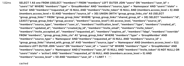 GitLab.com, logs entries with the number of executed cached queries in the
